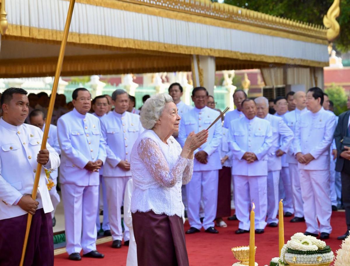 សម្ដេចព្រះមហាក្សត្រី ព្រះរាជតំណាងដ៏ខ្ពង់ខ្ពស់បំផុតរបស់ព្រះមហាក្សត្រ ស្តេចយាងជាព្រះរាជាធិបតី ក្នុងព្រះរាជពិធីបួងសួងចម្រើនសេចក្តីសុខ និងភាពសម្បូរសប្បាយដល់កម្ពុជានៅព្រះបរមរាជវាំង