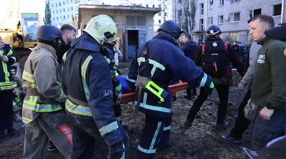 ក្រុមជួយសង្រ្គោះ ទាញសាកសពមនុស្ស ២នាក់ ចេះពីអគារបាក់បែក ក្រោយការវាយប្រហាររបស់រុស្ស៊ី