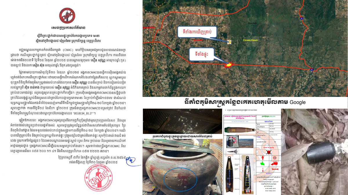 អគ្គនាយក CMAC បង្ហាញរបាយការណ៍ ប្រភេទគ្រាប់បែកចង្កោមដែលបានបង្កគ្រោះថ្នាក់ថ្មីៗនេះ