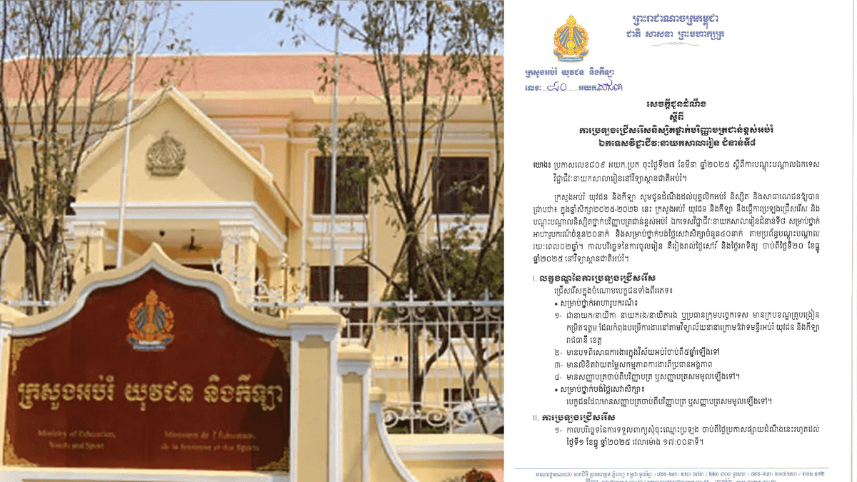 ក្រសួងអប់រំ ជ្រើសរើសនិស្សិតថ្នាក់បរិញ្ញាបត្រជាន់ខ្ពស់ ឯកទេសវិជ្ជាជីវៈនាយកសាលារៀន ជំនាន់ទី៨